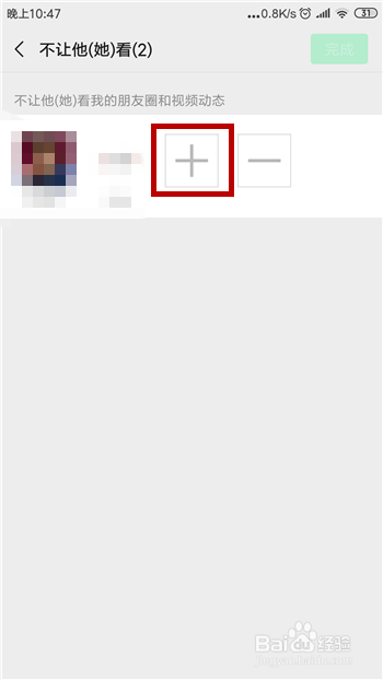 然后就可以起头添加不让评论和点赞的老友,点击【+】。
