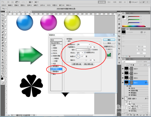 鼠标双击图示空白区域,弹出【图层样式】设置栏,勾选【内发光】、【斜面和浮雕】、【渐变叠加】以及【颜色叠加】,并按图示设置好对应的各个参数,完当作圆形图案的玻璃按钮结果建造。经由过程变动颜色可建造出分歧色彩的玻璃按钮;