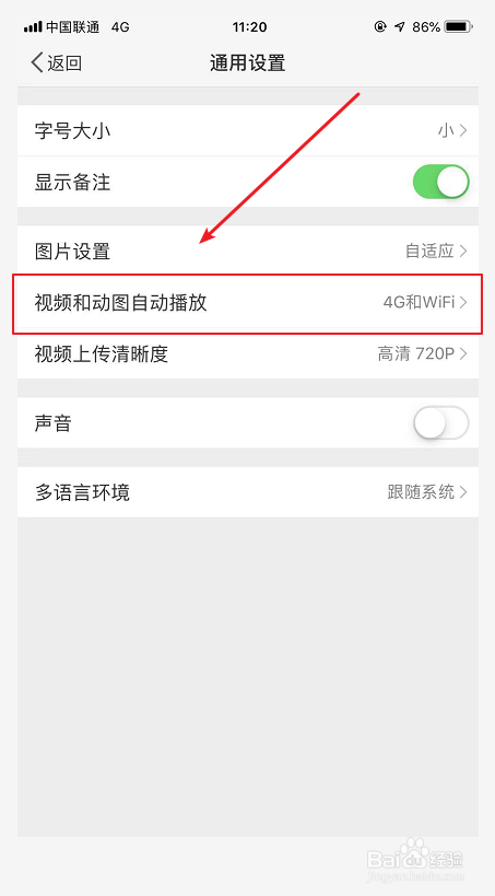 在当前打开的通用设置页面点击:视频和动图主动播放
