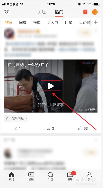 返回到微博可以发现视频不会主动播放了!需要点击才能播放