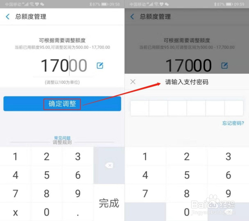 花呗额度要在必然的规模内以100元为单元调大或调小,调整好后点击【确认调整】按钮,调整花呗额度时需要输入支付密码。