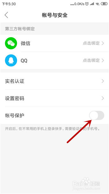 当作功输入验证码后即可开启账号庇护功能,今后在不常用的手机登录需要进行验证。