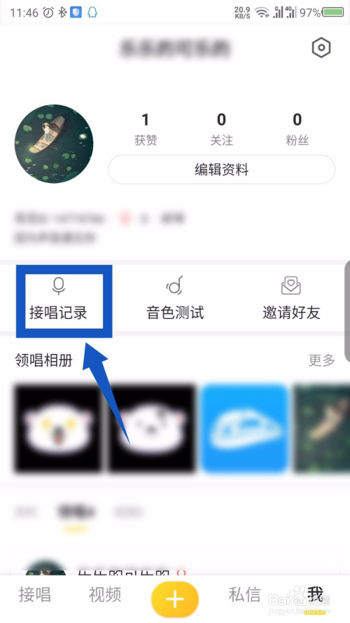 打开我界面后,能看到上面显示的接唱记实,点击打开。如图所示