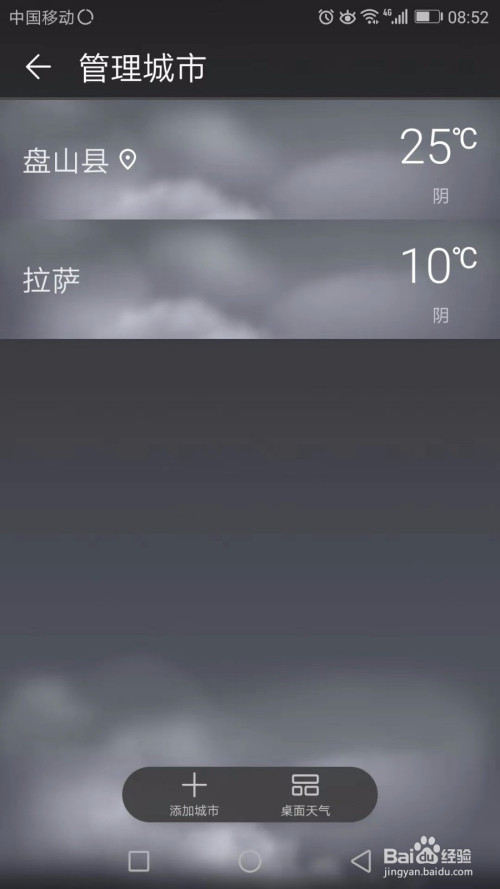 若是不是我们需要的城市,点击左上角的城市办理,然后将我们不消的城市删除,然后选择我们需要的城市名称。