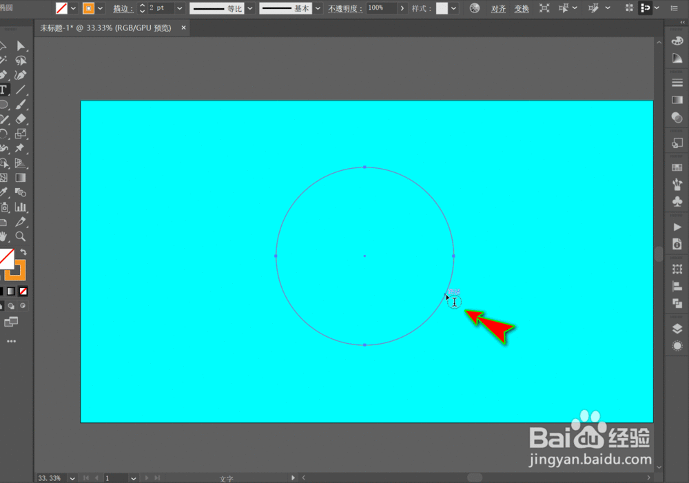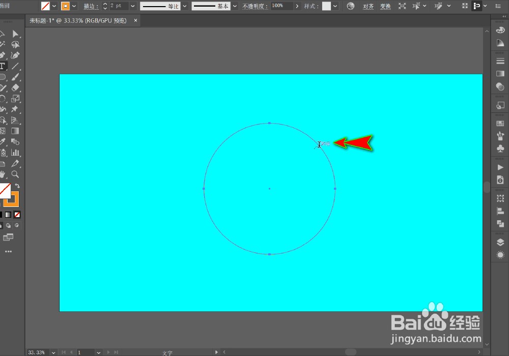 点击“文字东西”之后,然后将鼠标移至到外形对象的路径边缘上,如下图所示。