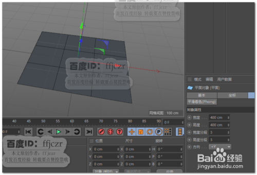 建立一个400*400的平面,分段为3*3,偏向为+Y。