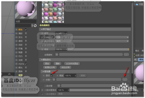 双击材质球,将颜色通道的纹理断根;从头选择纹理中结果的转变项。在转变着色器中激活纹理1,纹理1中加载备好的树叶贴图。