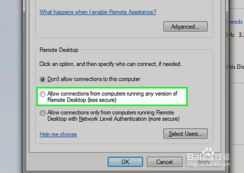 勾选“许可运行肆意版本长途桌面的计较机毗连”复选框。它位于弹出窗口的中心。这么做能让这台计较机与任何运行长途桌面的电脑毗连(如:Windows 10电脑)。