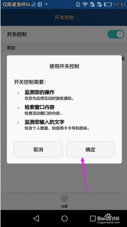 最后我们点击确定按钮就能打开手机的开关节制功能了。