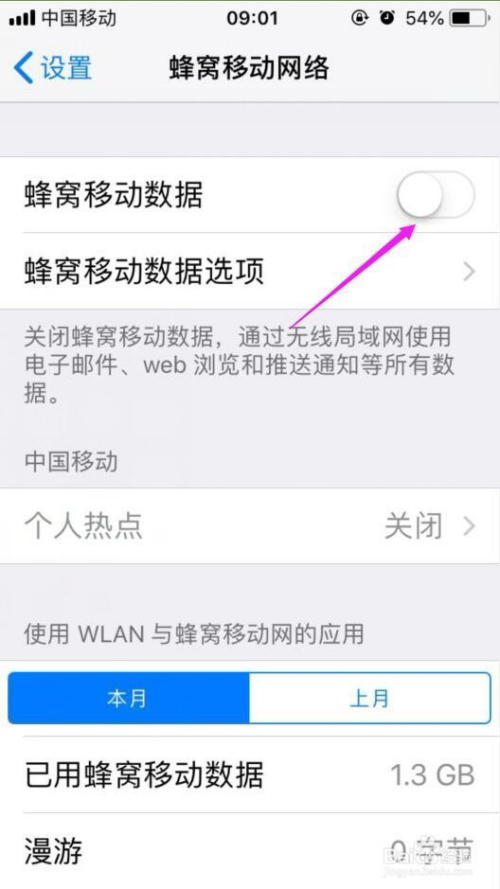 当“蜂窝移动数据”的开关酿成绿色时申明它已经被打开了,如图所示;