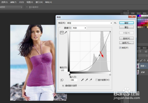 第五步:在曲线对话框中,标的目的暗影部门拖动区域,就可以使衣服颜色加深。