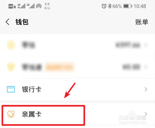 在钱包界面,点击亲属卡的选项。