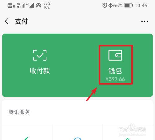点击进入支付中间后,选择钱包的选项进入。
