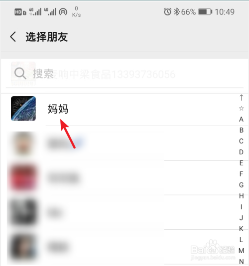 点击后,会跳转到微信联系人界面,在微信联系人中,选择需要赠予的联系人。