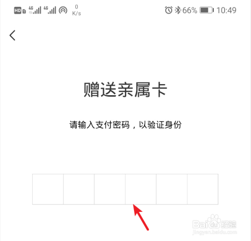 点击赠予后,需要验证支付密码,输入支付密码验证身份。