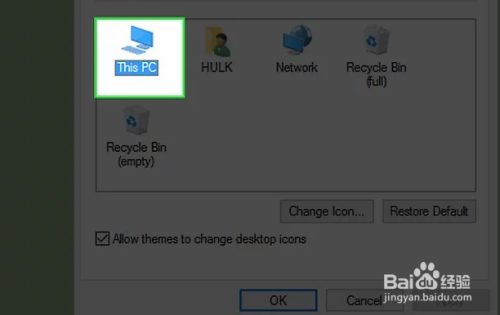勾选这个窗口中的“许可本家儿题更改桌面图标”方框,许可按照本家儿题更改图标。