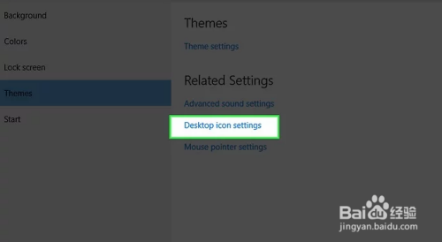 点击“本家儿题”页面右上方的桌面图标设置链接。这样会打开“桌面图标设置”窗口。