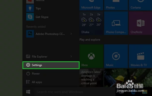 点击“设置”。它就在“起头”菜单的左下方。