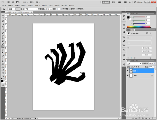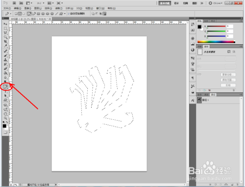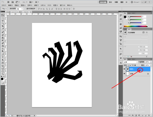 点击【路径】,切换到路径栏后,点击【将路径作为选区载入】将绘制好的路径转化为选区。点击【油漆桶东西】将选区填充为黑色(如图所示);