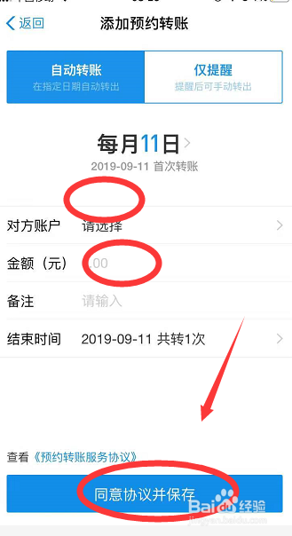 输入对方账户,金额,预约时候,赞成和谈并保留