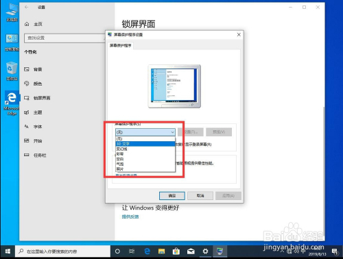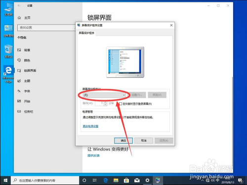 打开屏幕庇护程序设置后,点击“无”打开屏保程序列表