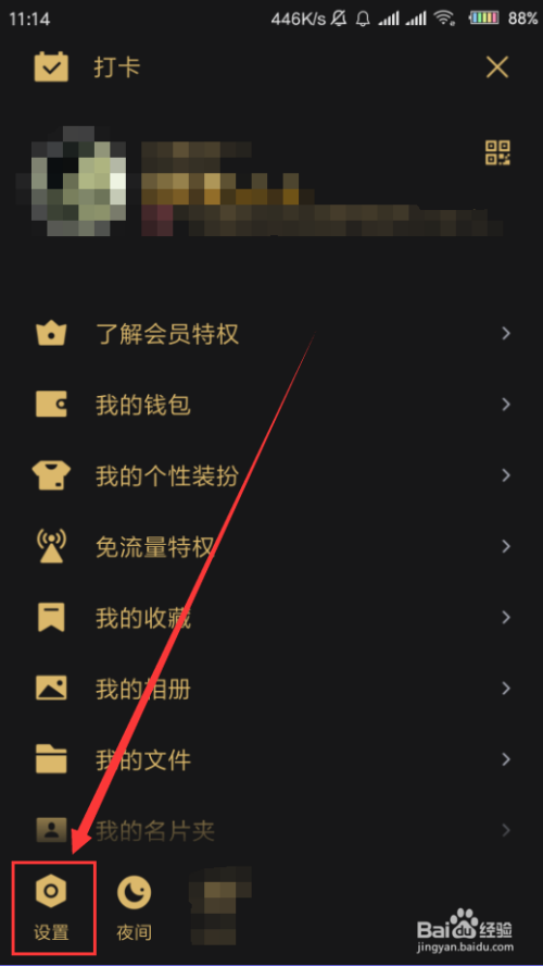 在本家儿界面中标的目的右滑动页面,选中底部的“设置”选项。