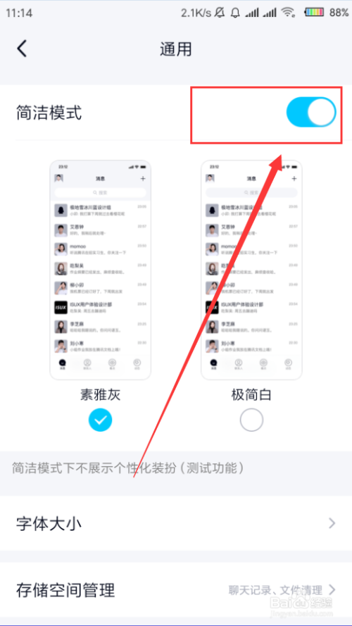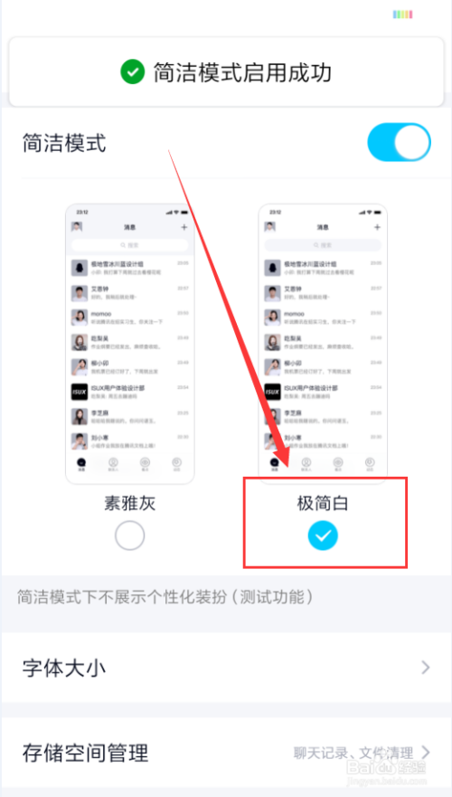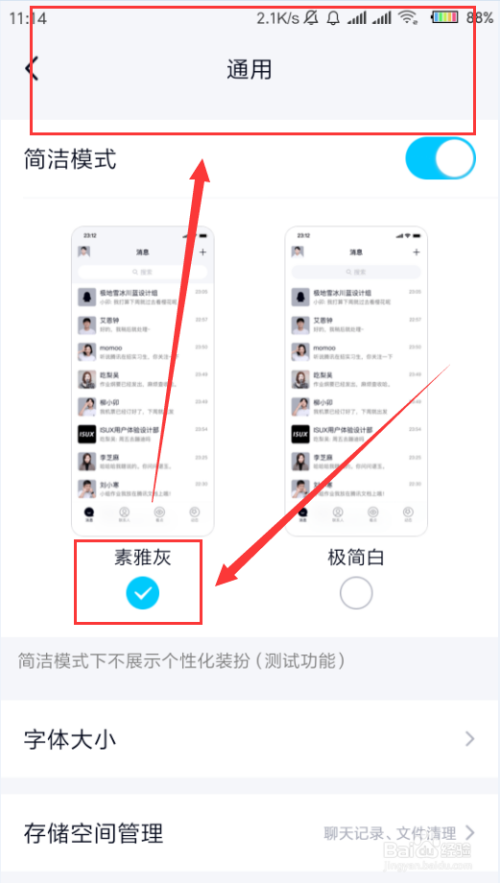 点击打开“简练模式”,系统默认有两种可供选择,如素雅灰、极简白。