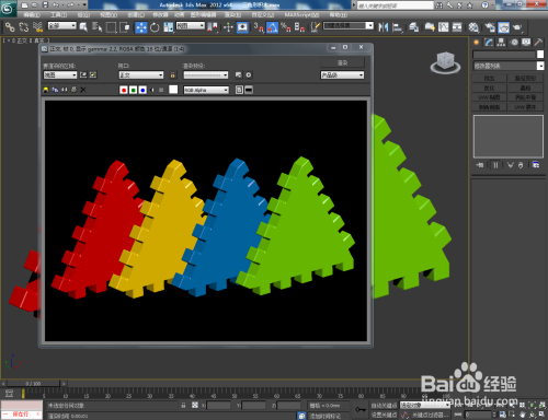 完当作三角形模子建造后,复制出几个模子副本。点击【材质编纂器】,弹出材质编纂器设置栏,按图示参数设置好几个彩色塑料材质并将材质依次附加给积木模子。最后,点击【衬着】将建造好的三角形积木模子衬着出图即可。