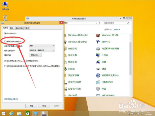 打开使命栏属性设置后,勾选上”利用小使命栏按钮“
