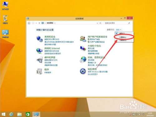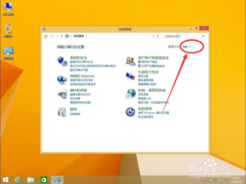 在打开的节制面板中,点击右上角查看体例旁边的”类别“