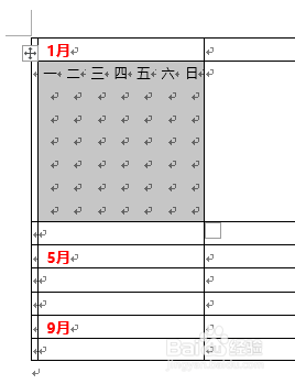 复制一月份中的小表格,然后一一粘贴到所有月份下面的单位格中。