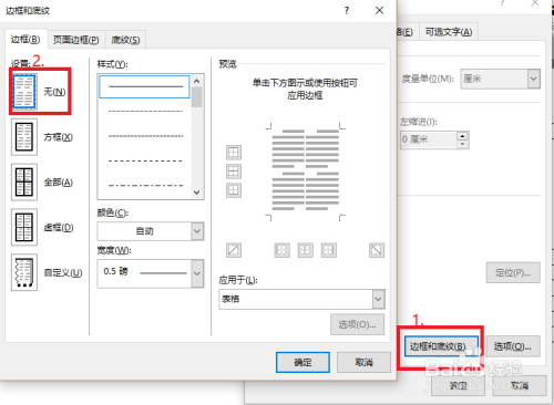 选中7行、7列整个表格,「右键」-「表格属性」-「边框和底纹」-「边框」,这里我们设为「无」,打消表格线条。