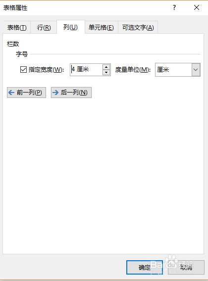 然后再次按住Ctrl键不放,鼠标逐个选中,第2、5、8、11列,「右键」-「表格属性」-「列」指定宽度设为「4」。