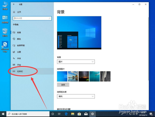 进入个性化设置后,然后点击左侧边栏里面的“使命栏”