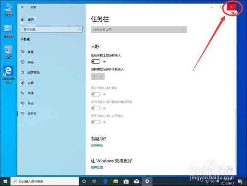 然后点击右上角的红色叉号,封闭设置即可,这样使命栏上就不会显示人脉图标了