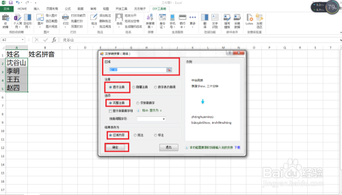 第四,在弹出的对话框中的区域规模已经主动填写方才步调2选择的姓名规模了,若是之前没有选可以在区域那边选摘要转拼音的姓名规模——选择显示注音——选项那边选择:完整注音——成果保留为区域内容——点击确定。注重:可以按照本身的需要选择其它的选项