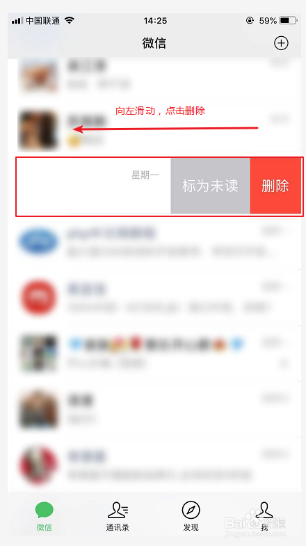 在微信聊天列表中,对着老友动静框标的目的右左滑动而且点击删除(删除老友全数动静)