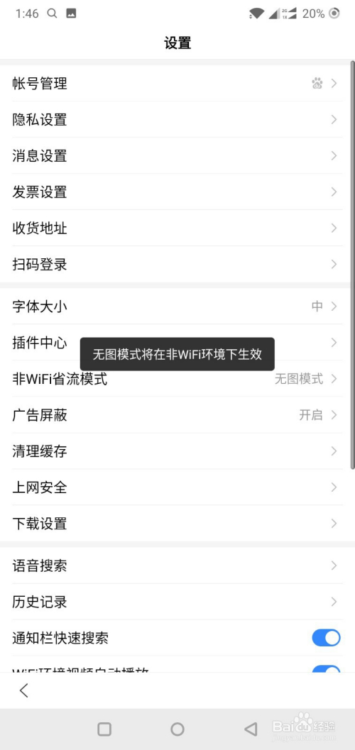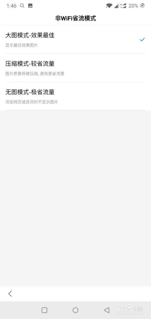 在这里有三种分歧的选择,一般非WIFI下,无图模式是最省流量的