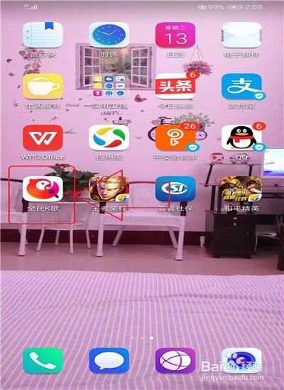 在手机本家儿页找到【全平易近K歌】,点击打开。