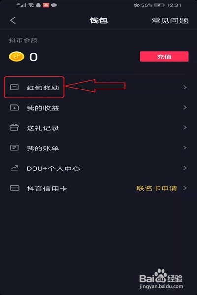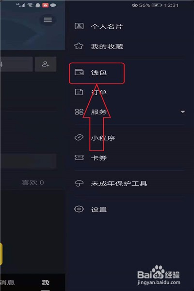 接着再点击第三项【钱包】。点击【钱包】之后,在【钱包】的页面,点击【红包奖励】。