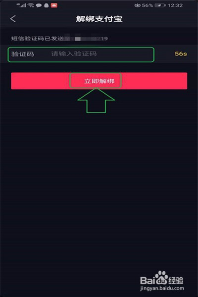 然后点【验证码】后面的【发送】,期待验证码,在验证码内输入短信接收到的验证码,注重时候限制是60秒,超时还需要接着发送。输入验证码之后,点【当即解绑】,显示【解绑当作功】。