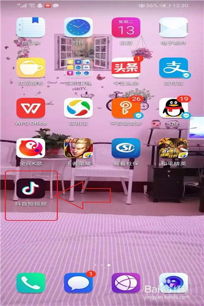 在手机本家儿页打开【抖音短视频】软件,打开之后输入账号密码,登录。