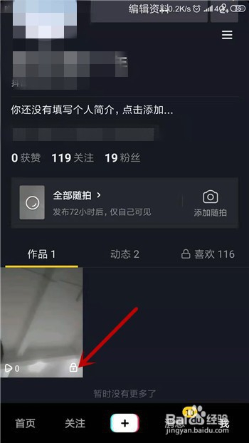 可以返回到抖音小我本家儿页,此时在作品下可看到这个视频的锁消逝了,暗示为公开状况。