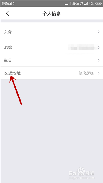接着在小我信息里可看到【收货地址】,点击打开它。