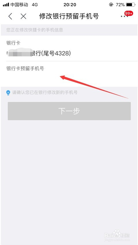 也可以选择点窜,此时可以点窜所绑定银行卡的预留手机号,如图所示。