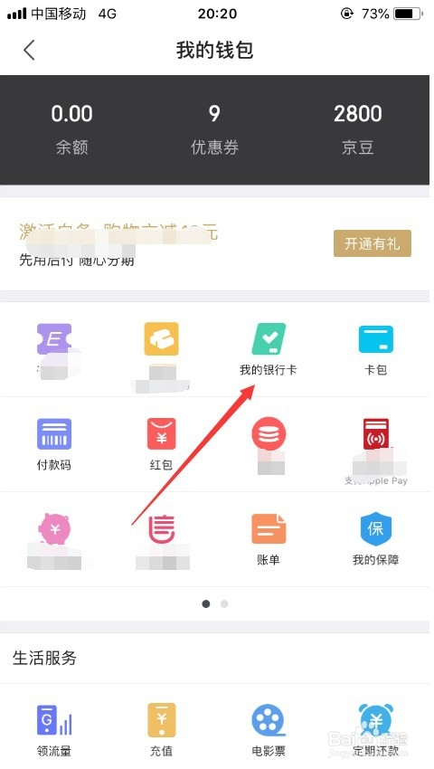 进入我的钱包之后,就可以看到“我的银行卡”,点击进入即可,如图所示。