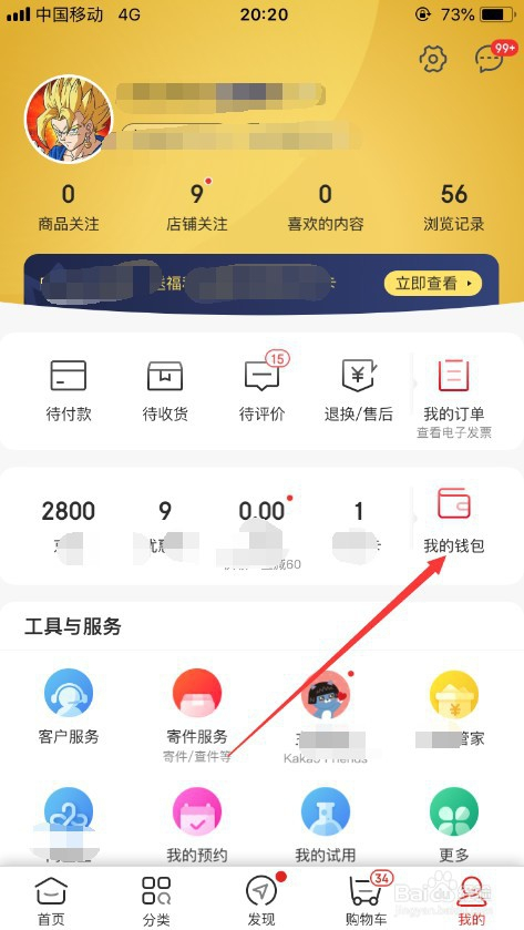 进入京东小我中间之后,选择此中的“我的钱包”,并点击进入,如图所示。