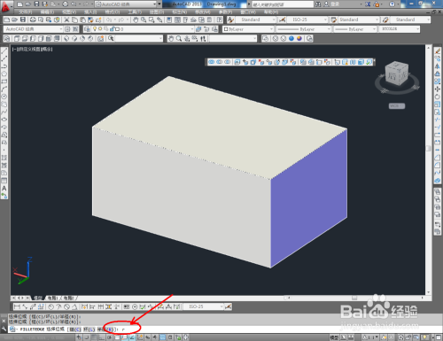 经由过程【实体编纂】东西,我们可以对长方体模子进行进一步编纂建造。我们以圆角边为例,点击【圆角边】鼠标选中需要圆角处置的边线后,在号令栏输入:r并按下空格键,输入数目:50,完当作选边的圆角处置。这样我们用cad绘制的长方体就建造完当作了。