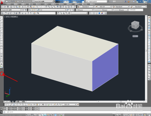 点击【画图】-【建模】-【长方体】,按图示在作图区域绘制一个长方体模子。完当作后,点击视图栏中的【西南等轴测】将视图切换为西南视角(如图所示);