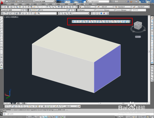 鼠标依次点击视觉样式中的【线框】、【埋没】、【真实】、【概念】图标,可绘制出各类视觉样式的长方体模子(如图所示);